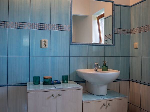 V přízemí je koupelna se sprchovým koutem, WC a pračkou. V patře je toaleta.